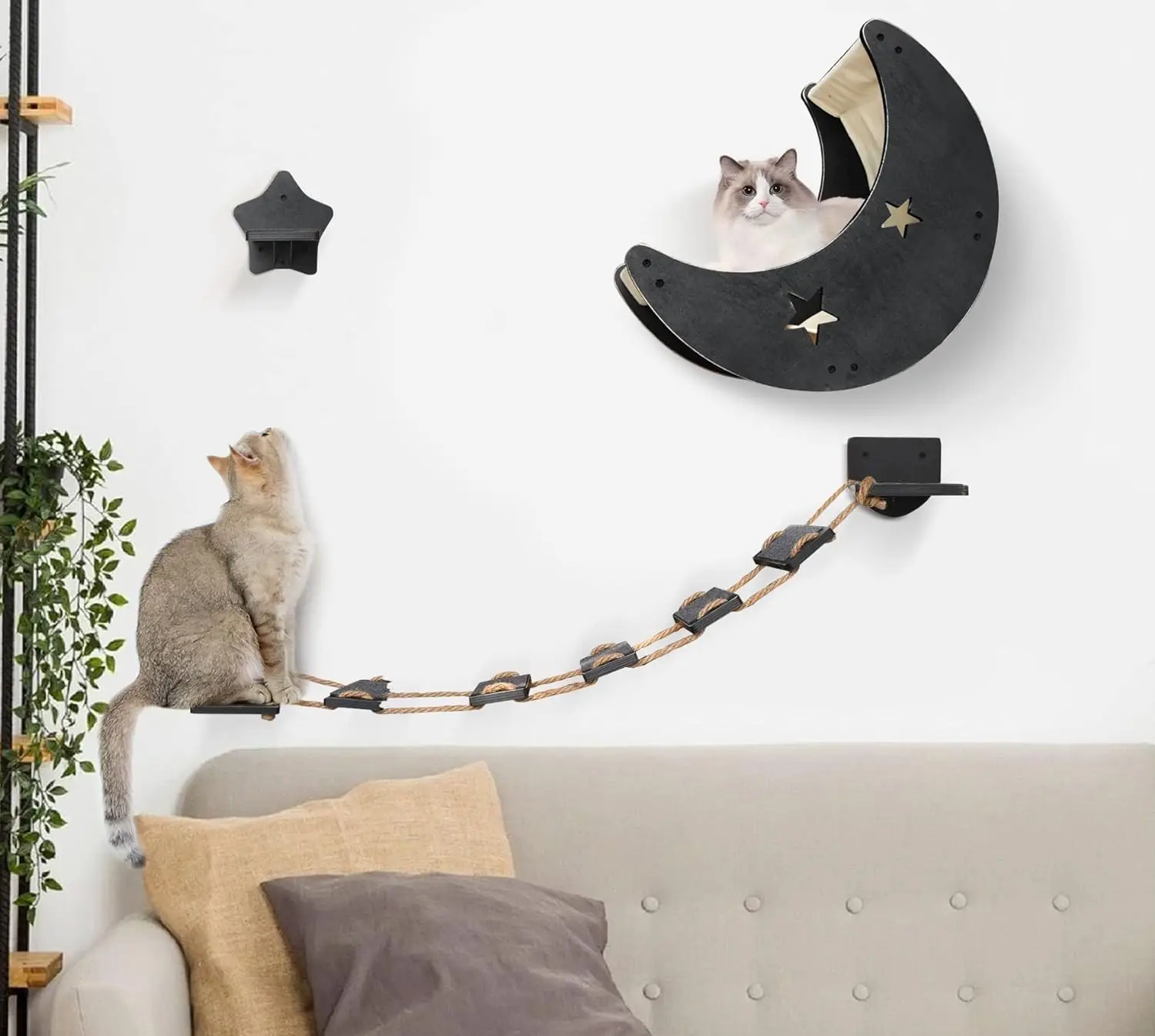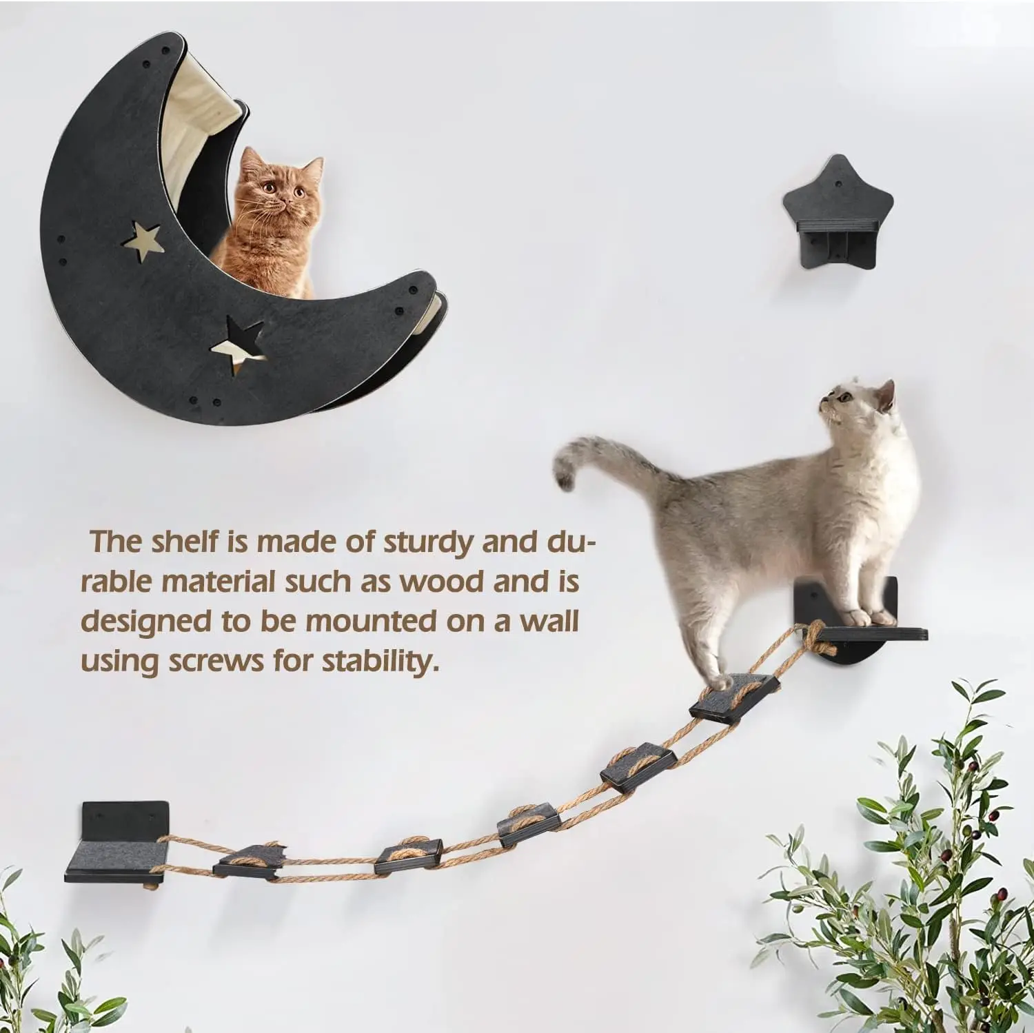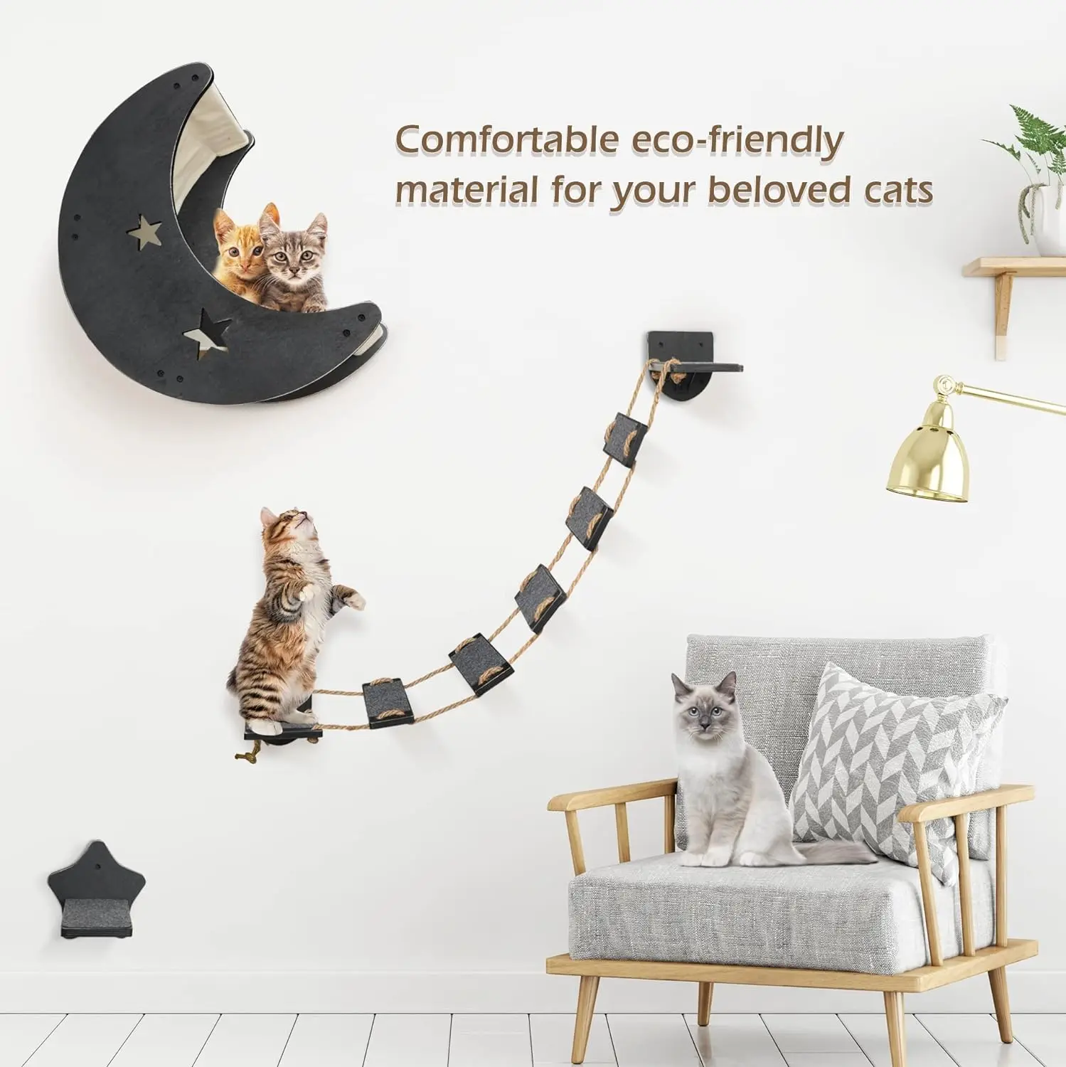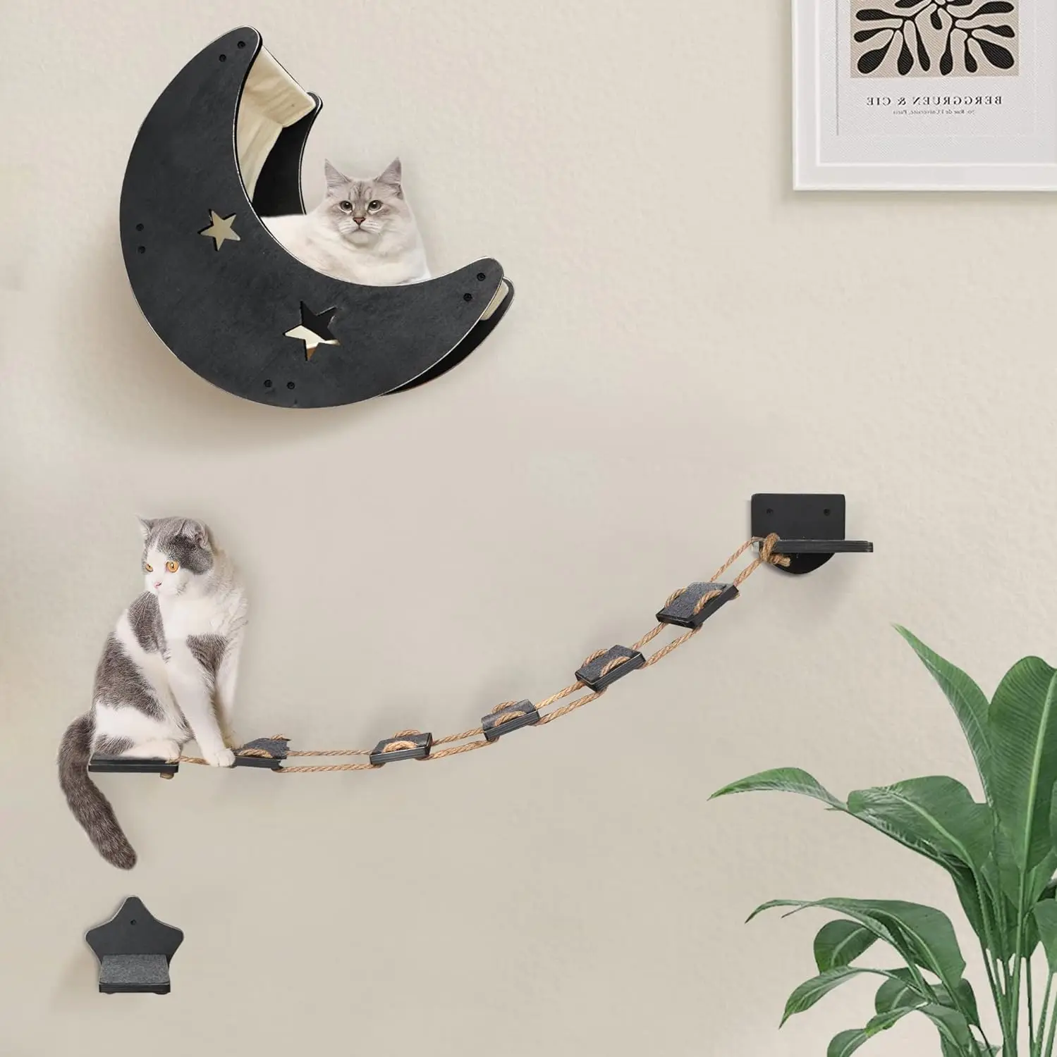 Настенные полки для кошек, современная настенная Мебель для кошек с 1 шагом и 1 шагом моста для скалолазания, полка для скалолазания для кошек и стены