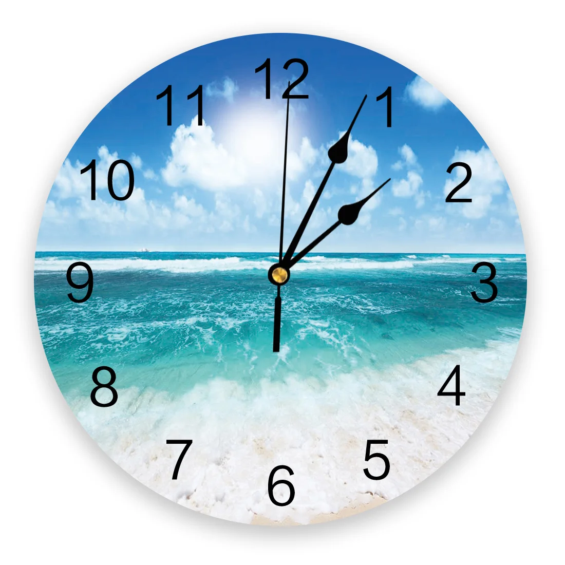 Настенные часы с изображением солнца, пляжа, волн, украшение для гостиной, цифровые часы, современный дизайн, настенные часы