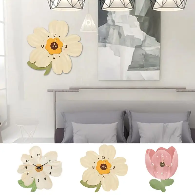 Настенные часы с цветами и лепестками, тихие украшения на батарейках, современные элегантные аксессуары для домашнего декора