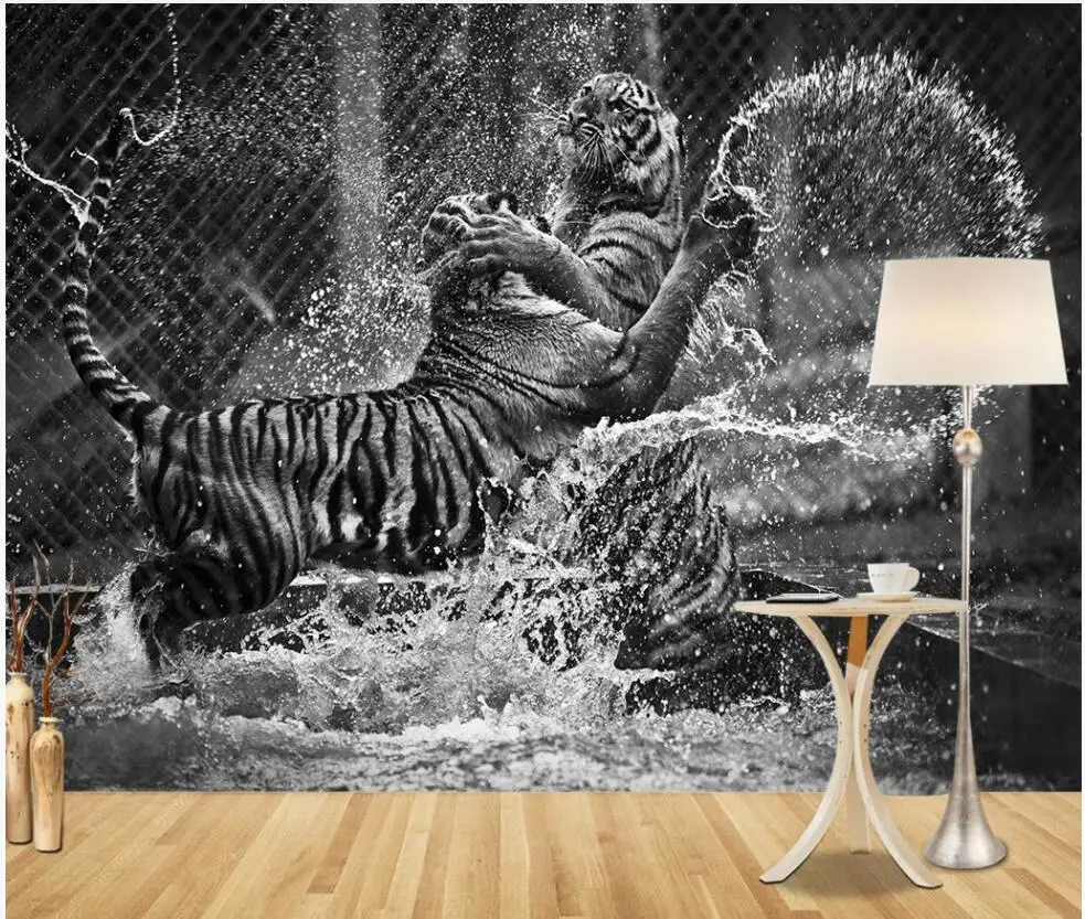 Настенные 3D-обои на заказ, абстрактное искусство в современном стиле, черно-белый тигр, борьба, домашний декор, настенные фрески 3d, обои для стен 3 d