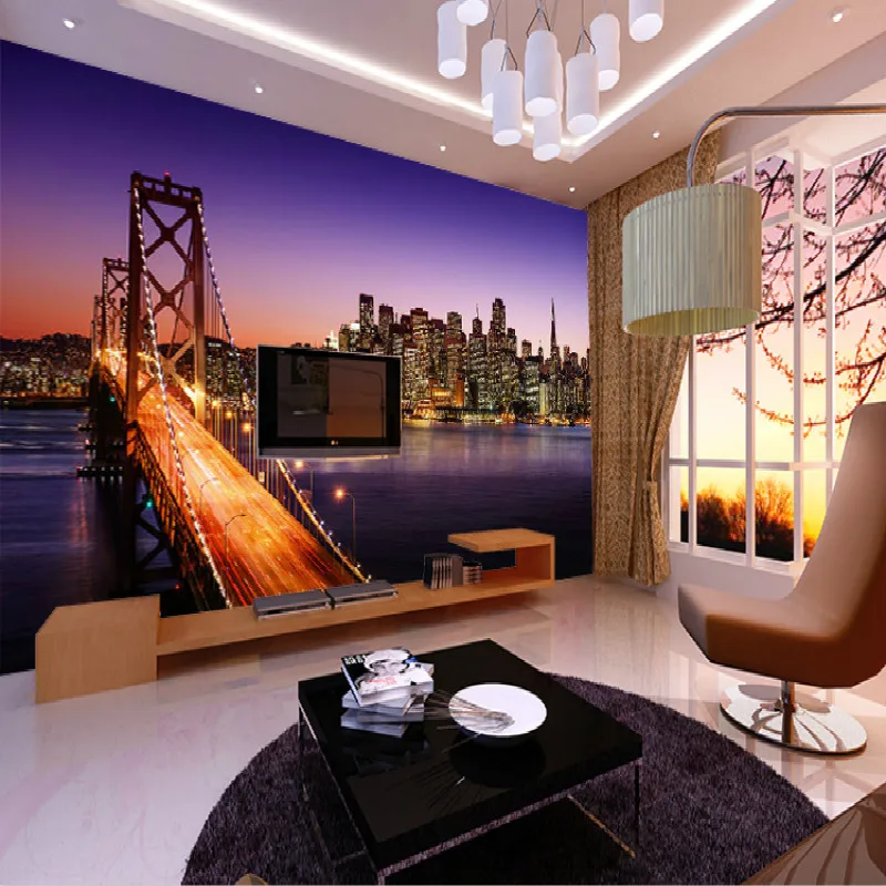 Настенные 3D-обои с изображением Нью-Йорка, моста, европейских телевизоров