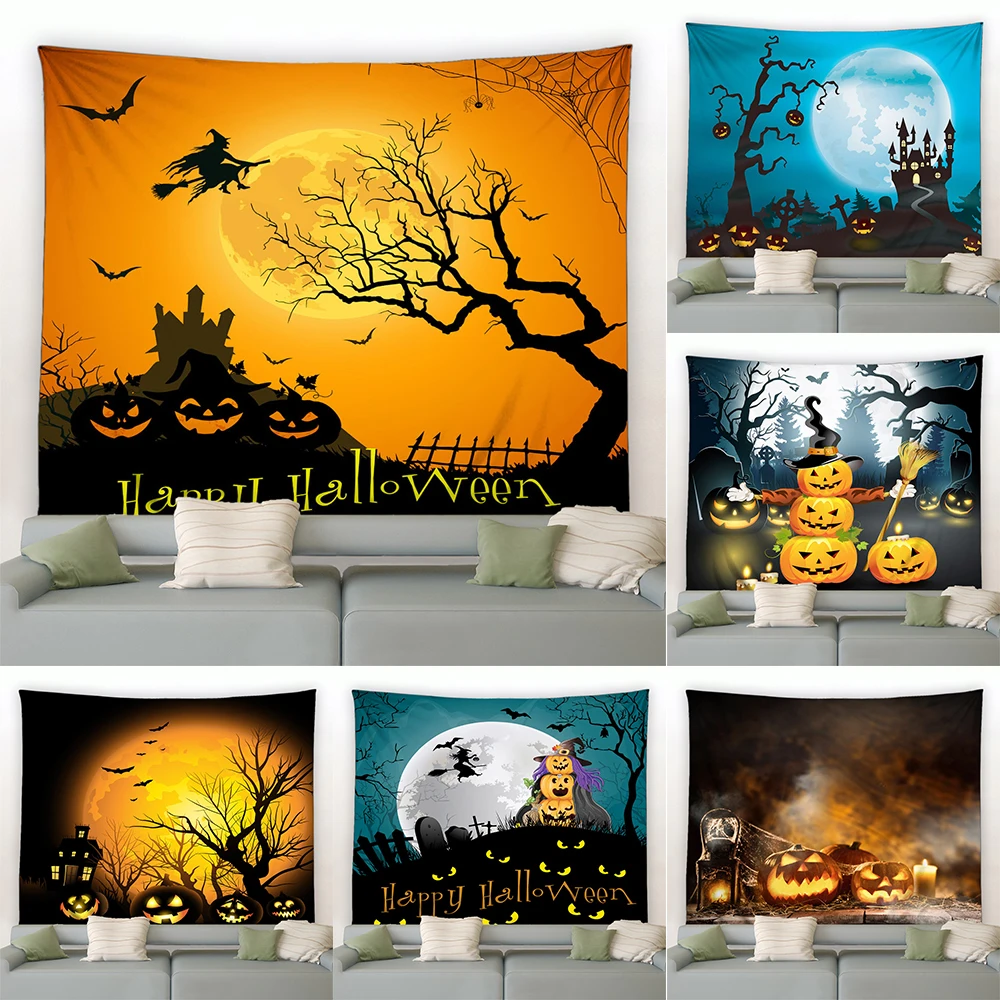 Настенный Гобелен на Хэллоуин, серия ужасов, тыква, летучая мышь, ведьма, украшение для дома, гостиной, кровати