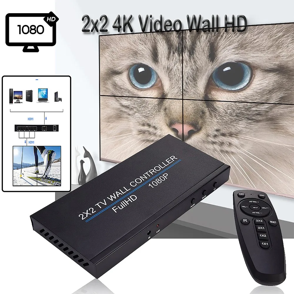 Настенный видеоконтроллер 2x2, 1080P, 60 Гц, 4-канальный HD-дисплей, вращение на 180 градусов, 8 режимов дисплея, совместимый с HDMI, вход на выходе