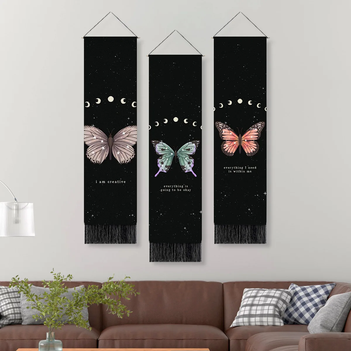 Настенный гобелен с бабочками, луной, солнцем, декоративный ковер для спальни