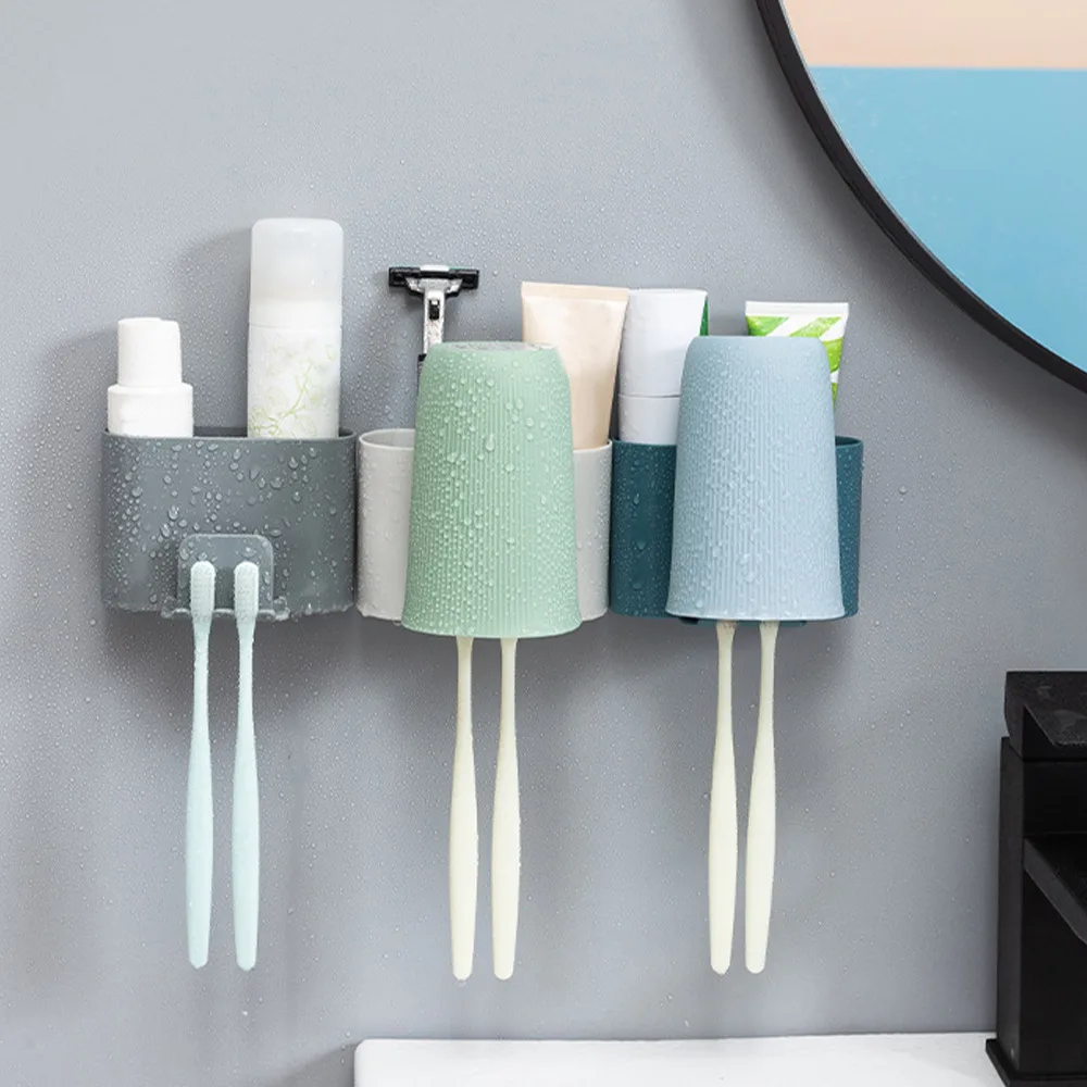Настенный держатель для зубных щеток, настенный бытовой держатель для зубных щеток в ванную комнату, без перфорации, для полоскания рта, кон...