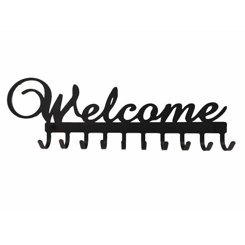 Настенный держатель для ключей, Декоративная вешалка для ключей, 10 крючков, черный металлический органайзер для ключей, для прихожей