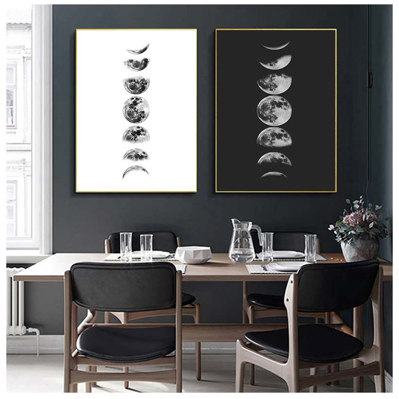 Настенный плакат на холсте с изображением фаз Луны, плакат с изображением фаз черно-белой Луны, картина с изображением Луны, домашний настен...