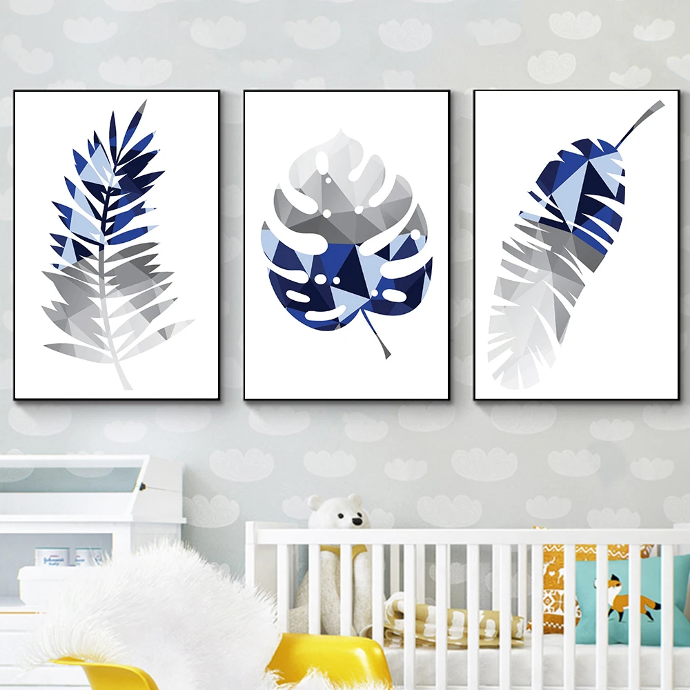 Настенный плакат с абстрактными синими и серыми листьями в скандинавском стиле