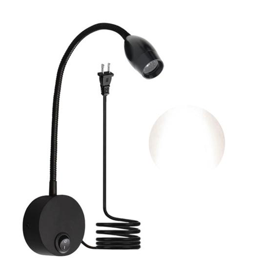 Настенный прикроватный светильник, лампа для чтения с вращающимся на 360 градусов шлангом, супер яркий светодиодный ночник без мерцания US Plug White Light. чёрный