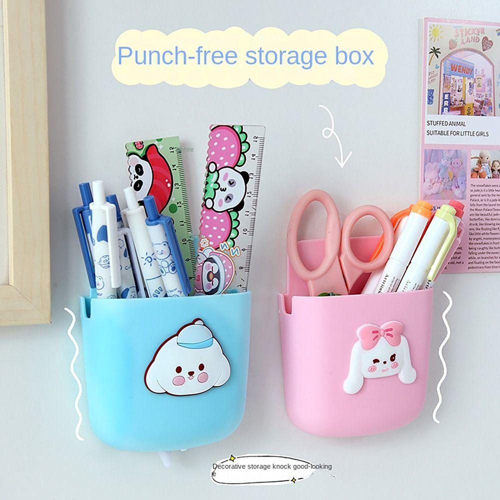 Настенный ящик для хранения, держатель для зарядки без перфоратора, симпатичный контейнер для ручек и линеек для домашнего обучения