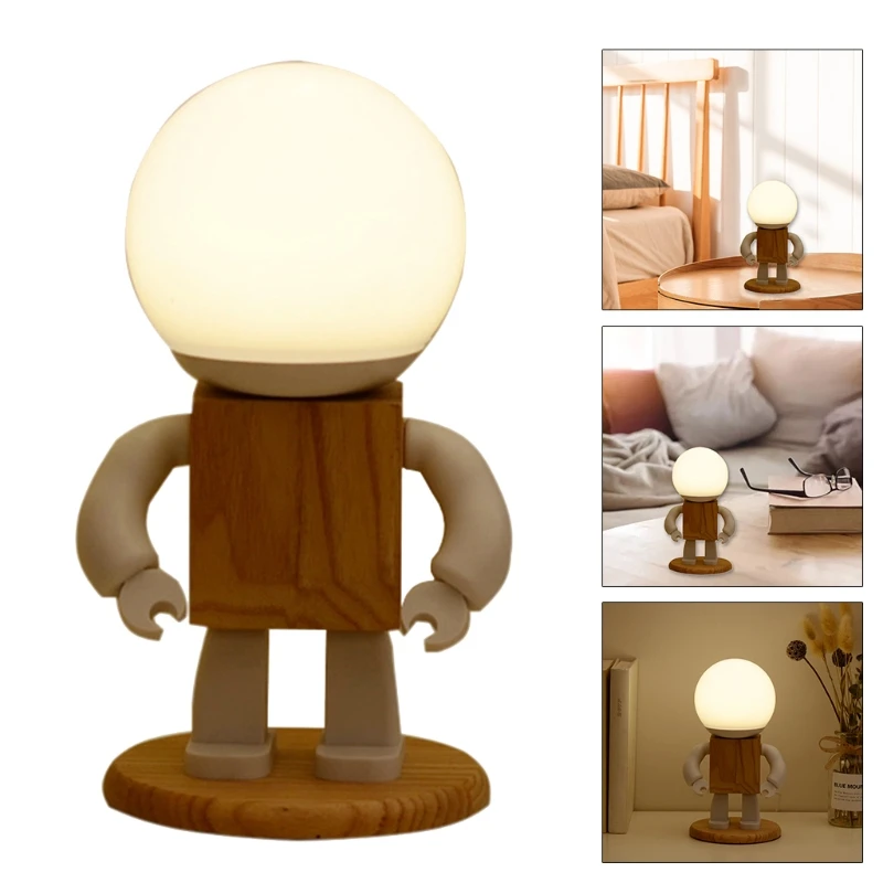 Настольная деревянная лампа-робот, простой креативный ночсветильник для дома, спальни, T8NE