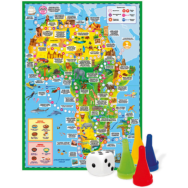 Увлекательная игра, которая познакомит участников с самым жарким материком, его особенностями и обитателями. Необходимо передвигать фигурку по игровому полю на столько шагов, сколько выпадет на кубике. Победит тот, кто первым придет к финишу, преодолев все преграды. Изготовлены из плотных и безопасных материалов.