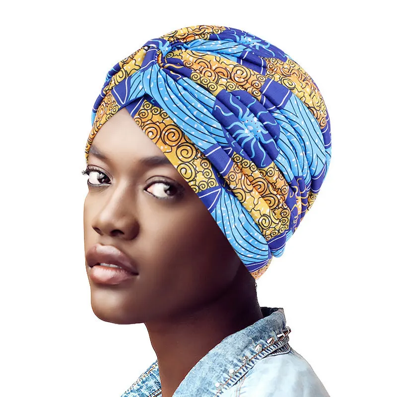 1PC Women Printed Baotou Cap African Style Cross Twist Hat All-match Polyester Cross Twist Hat Comfortable Chemotherapy Cap