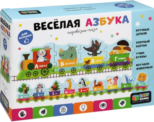 Обучающий набор "Паровозик. Веселая азбука" поможет вашему ребенку легко выучить буквы алфавита. Соберите вагончики, состоящие из букв и слов, начинающихся с этой буквы, а из вагончиков - разноцветный паровоз. Все элементы снабжены пазловыми замками, которые помогут правильно собрать паровозик.