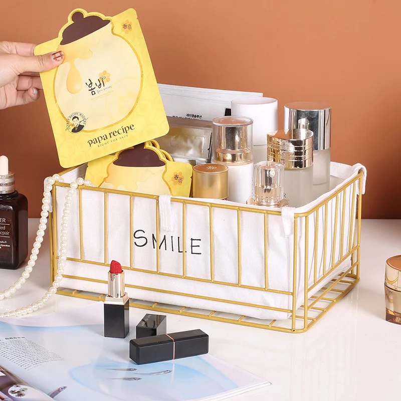 Настольная корзина для хранения в общежитии, многофункциональный органайзер для макияжа, водонепроницаемая металлическая корзина, стильный и универсальный Настольный Органайзер