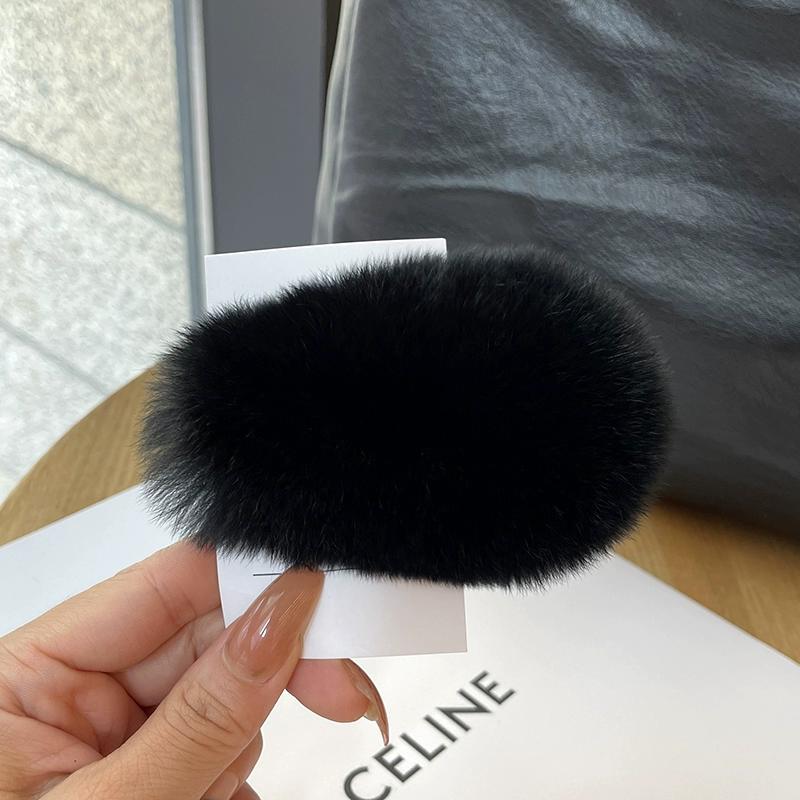Настоящая выдра, кроличья шерсть, большие заколки для волос, открытка для волос, корейская супер фея, плюшевое украшение для волос, милый меховой зажим с краями карты чёрный