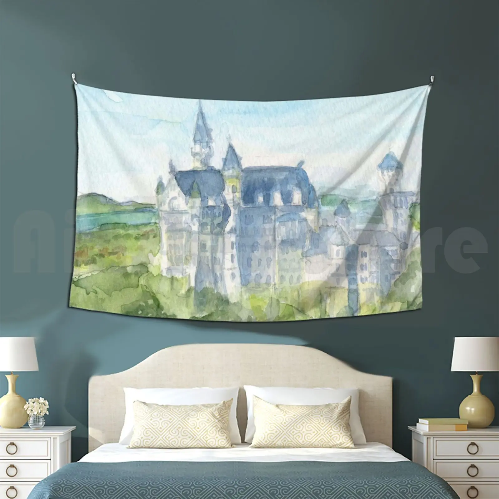 Настраиваемый гобелен в виде замка нейшванштейн, замок в стиле пейзажа, акварель, Германия