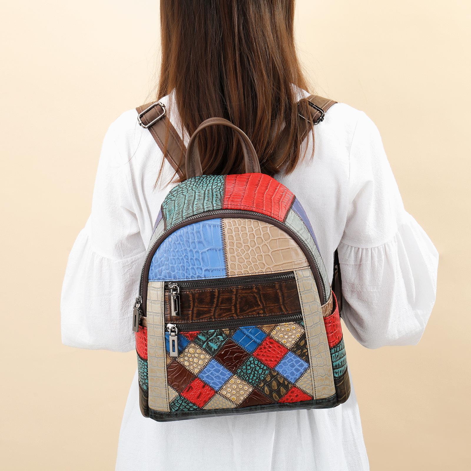 Натуральная кожа Цветной Маленький рюкзак Женская сумка через плечо Кожаная сумка через плечо в этническом стиле в стиле ретро из коровьей кожи Tide