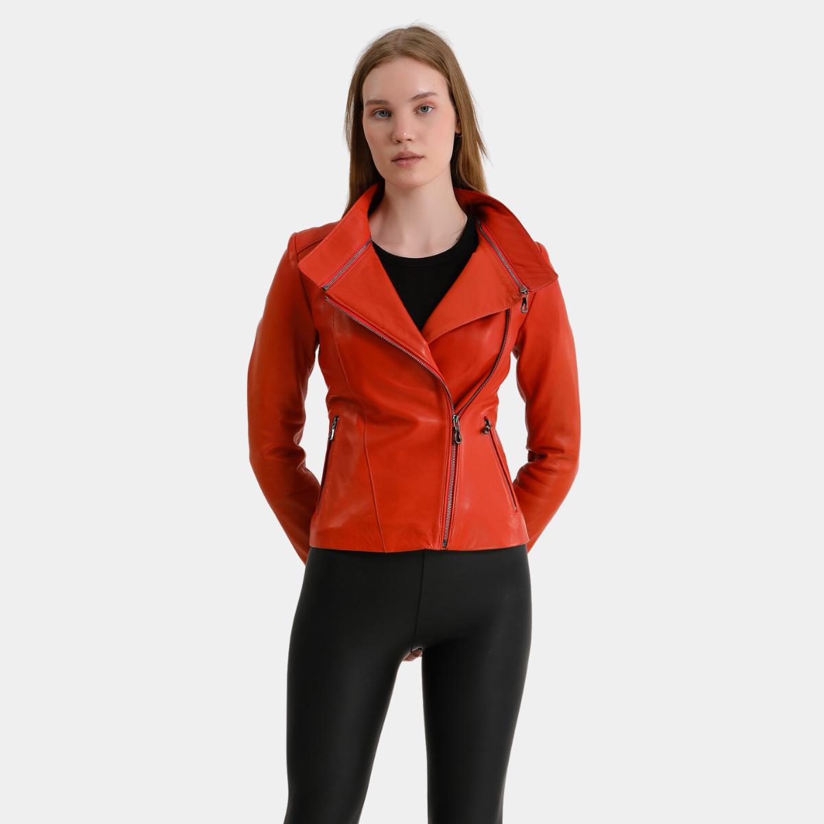 Натуральная, натуральная кожа, женская куртка S красный