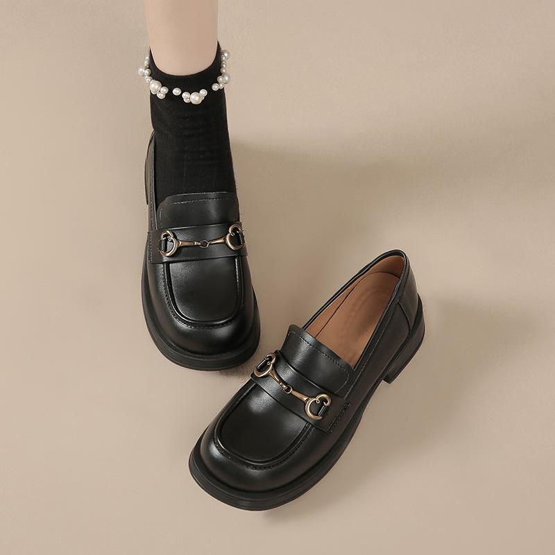 Натуральная кожа на плоской подошве для женской обуви Huizhou, виноградная мать, та же маленькая кожаная обувь, женская круглая обувь, осень и зима, новые женские мокасины 34 чёрный