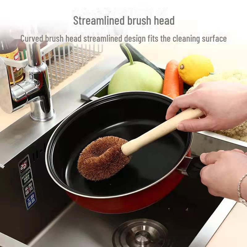 Натуральная щетка для мытья посуды из кокосовой пальмы с длинной деревянной ручкой – щетка для чистки кухни с антипригарным покрытием Default