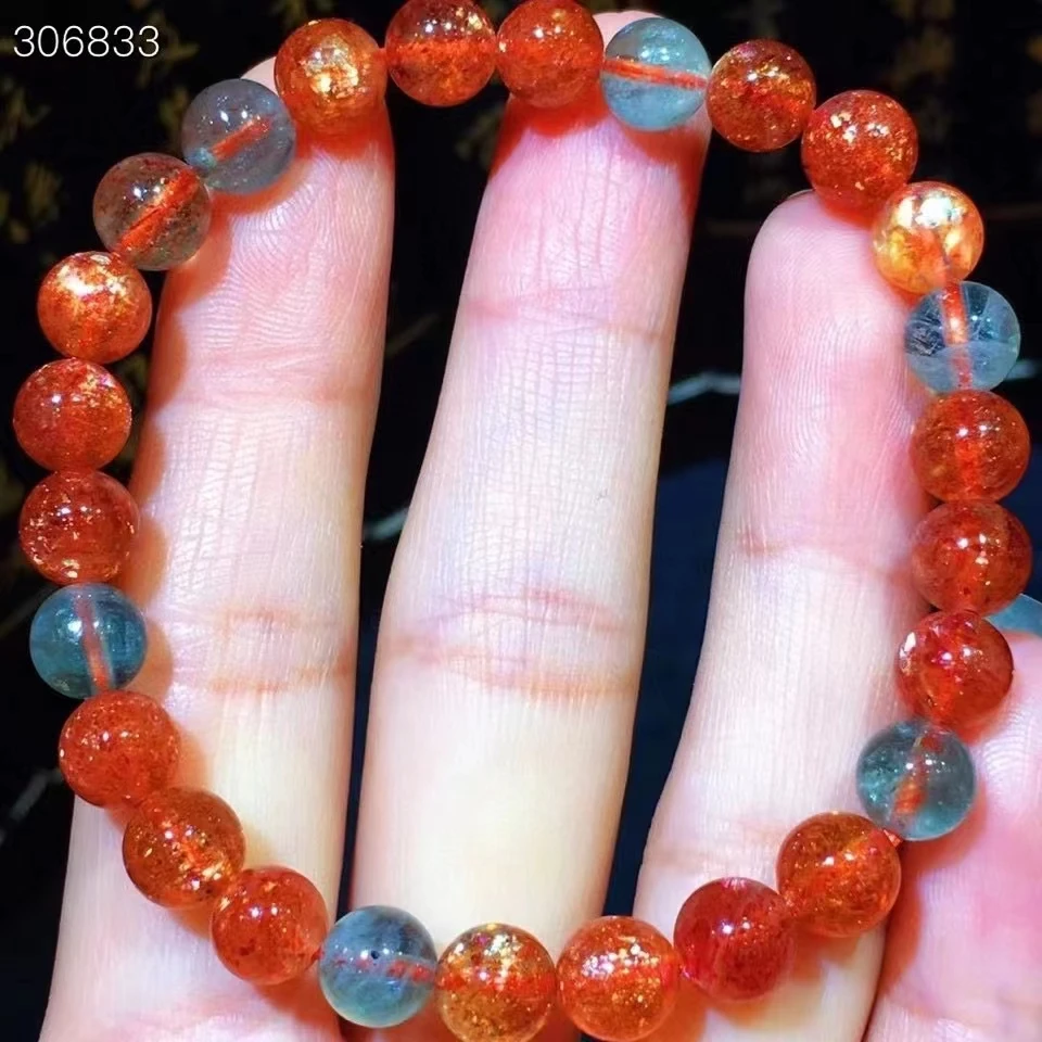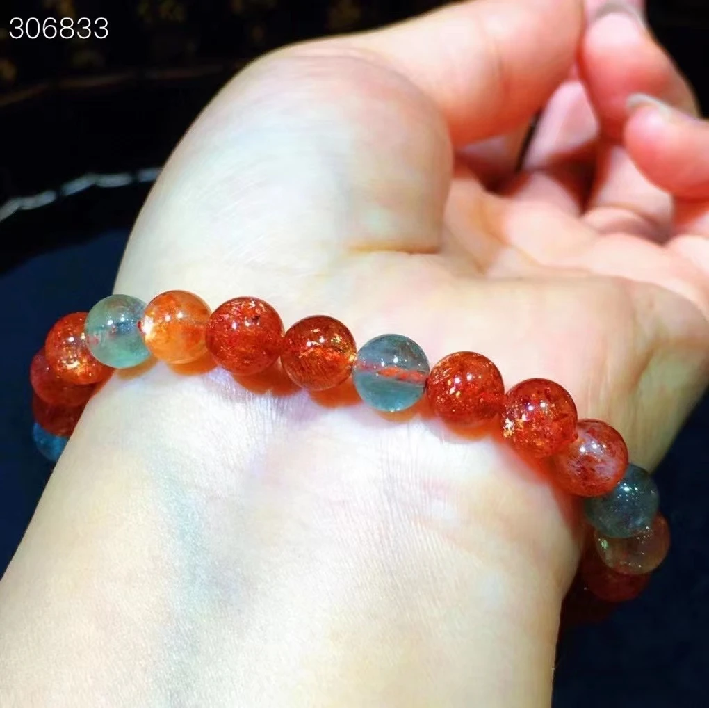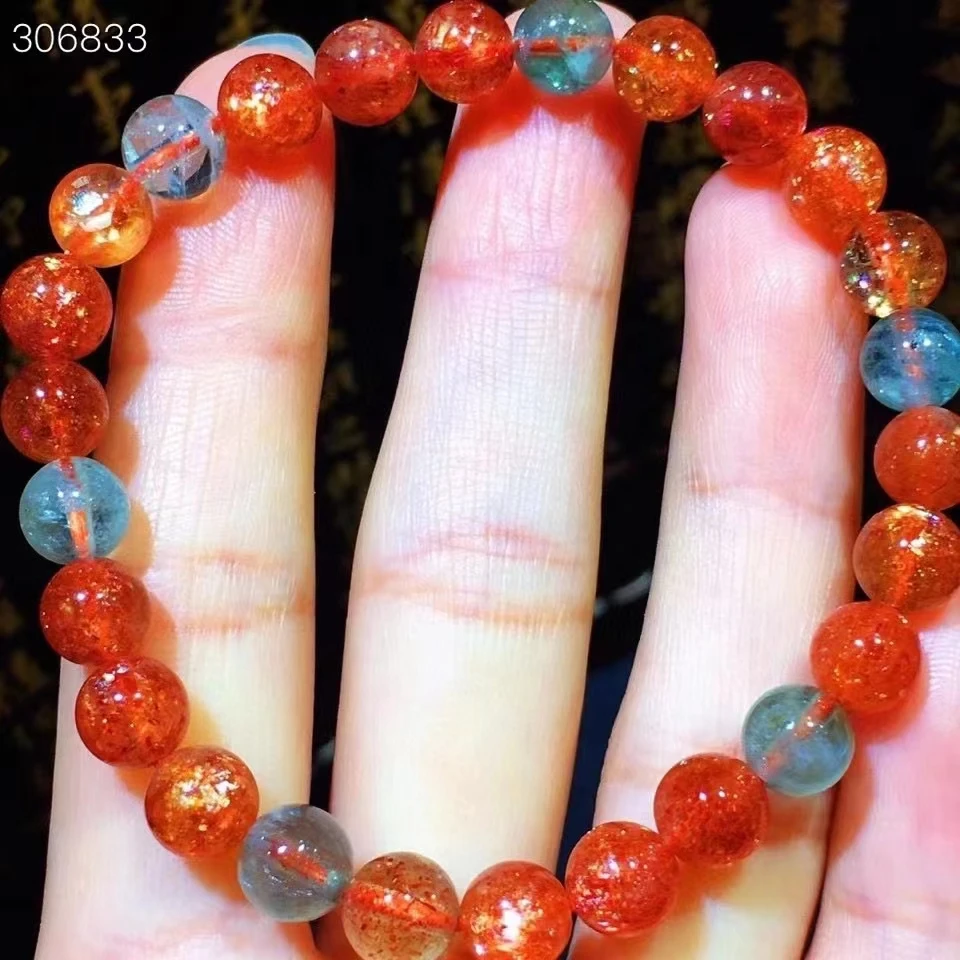 Натуральное золото Sunstone клубника кварц Берил браслет Аруша 7 мм прозрачные круглые бусины женский браслет AAAAAA