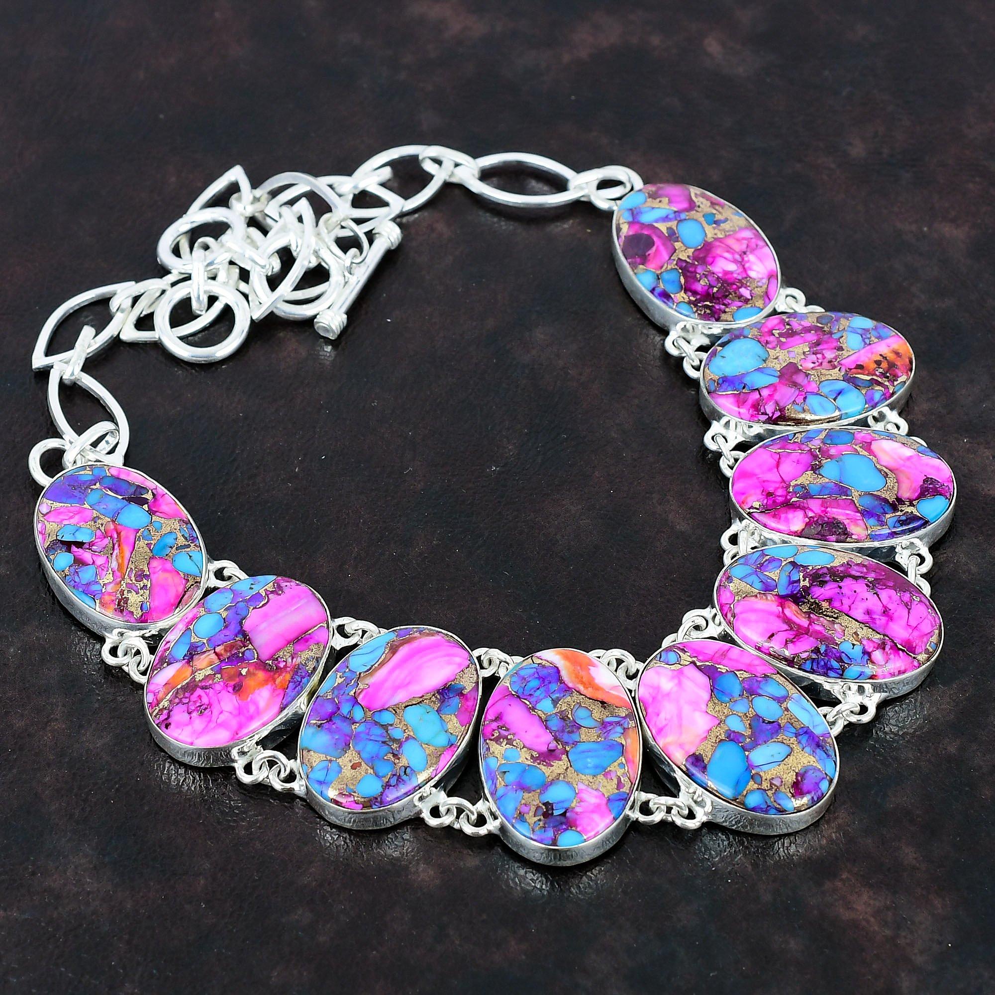 Натуральное ожерелье Kingman с розовым георгином и бирюзой, ожерелье из стерлингового серебра 925 пробы, регулируемая цепочка, ожерелье, драгоценный камень, ювелирные изделия ручной работы, подарок для мамы Adjustable