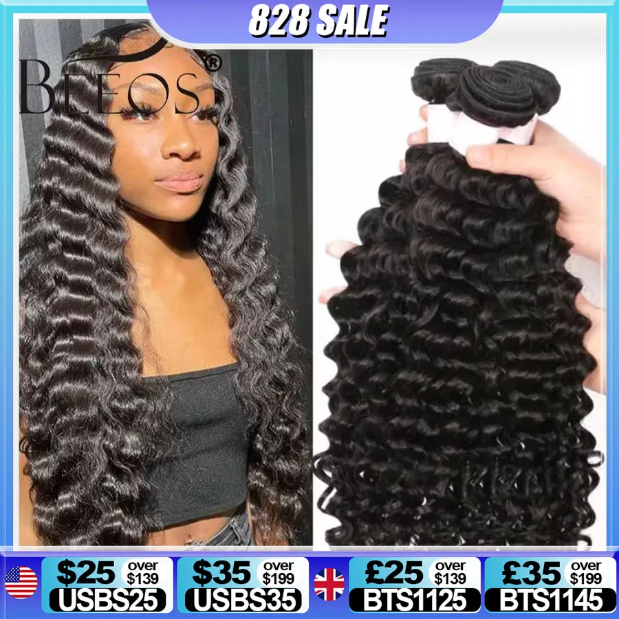 Натуральные волнистые пучки BEEOS, двойное наращивание волос, человеческие волосы, глубокие кудрявые бразильские волнистые пряди без повреждений, 1/3 шт., 40 дюймов