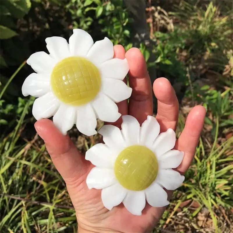 Натуральный Белый Мраморный нефрит 8 см с кальцитной маргариткой резьба энергетический лечебный Хрустальный цветок украшение для дома подарок 1 шт.