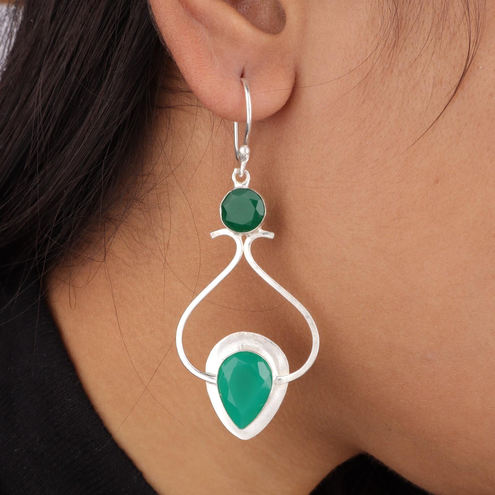 Натуральный Зеленый Оникс Драгоценный Камень 925 Стерлинговое Серебро Ручной Работы Серьги 2.07 Для Подарка EE-170-18