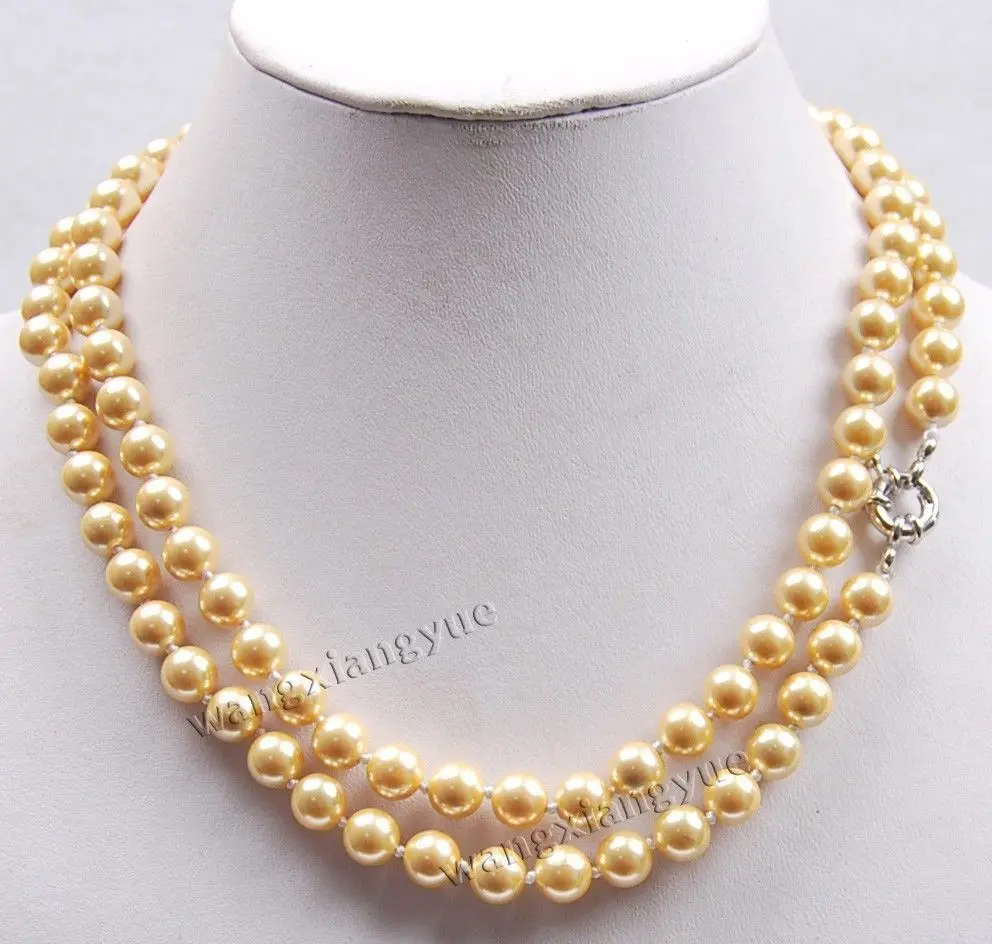 Натуральный Цвет Благородство Женская длинная 34 "8 мм золотой раковины южного моря с украшением из жемчужин и перламутровых камней * камней ...