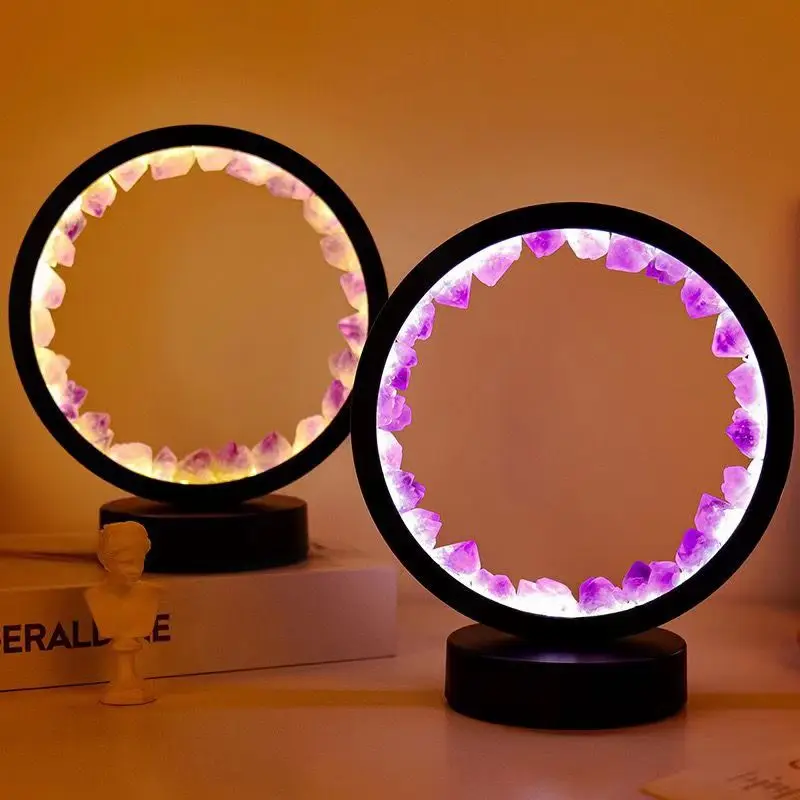 Натуральный аметистовый цветок, Круглый прикроватный ночной фонарь, USB прикроватный фонарь для спальни, защита глаз, атмосфера, искусственная ночь