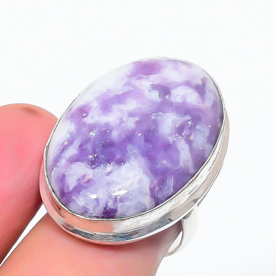 Натуральный драгоценный камень лепидолит 925 пробы серебряное ювелирное кольцо размер 7 T0w84