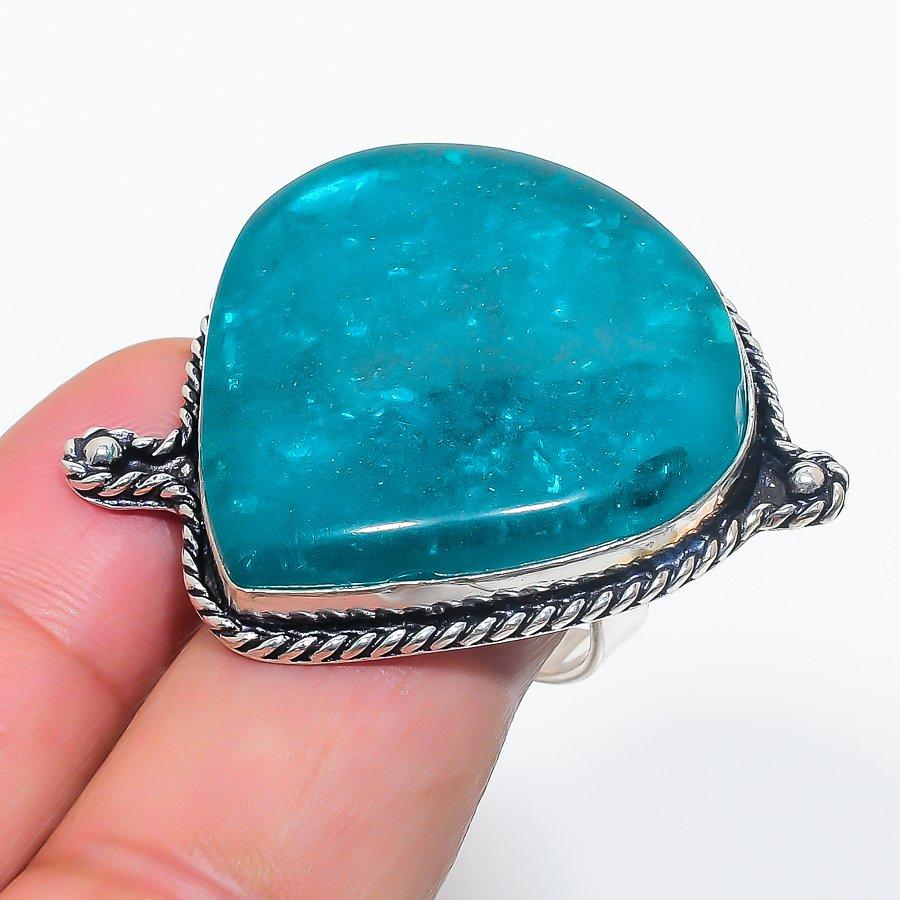 Натуральный неоново-голубой апатит драгоценный камень ювелирное кольцо из стерлингового серебра 925 пробы размер 10 n1N43