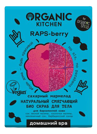 Натуральный смягчающий био скраб для тела Сахарный мармелад Домашний SPA Organic Kitchen RAPS-berry 120г