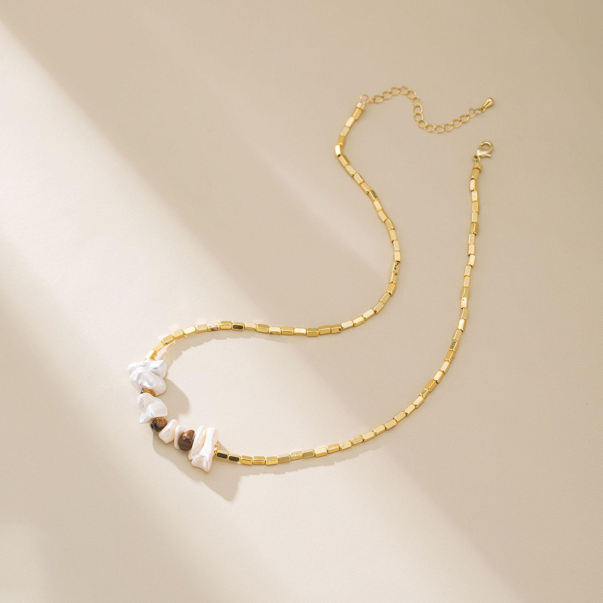 Многослойное ожерелье на ключицу из натурального тигрового глаза и кошачьего глаза - ретро-дизайн осень/зима TN00698
