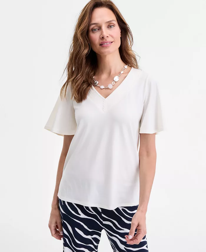 Женский трикотажный топ с V-образным вырезом и короткими рукавами JM Collection, белый