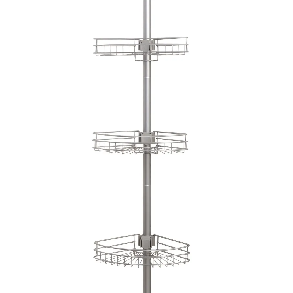 Натяжная стойка для душа, устойчивая к ржавчине сталь, 3 полки, сатин-никель