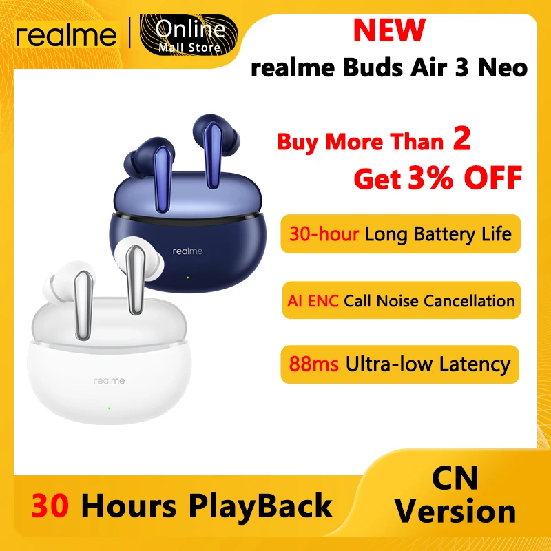 Наушники realme Buds Air 3 Neo, 30 часов автономной работы, шумоподавление, сверхнизкая задержка, 88 мс