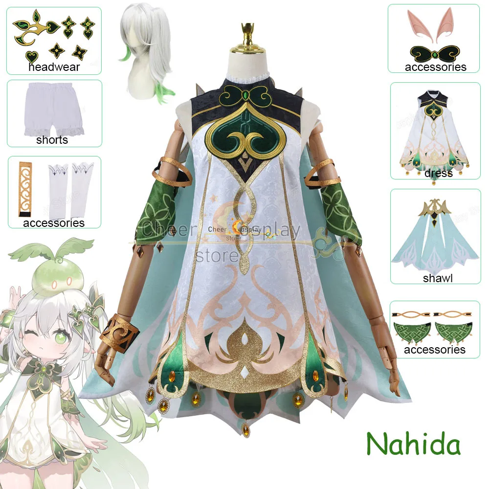 Нахида Косплей геншин ударт нахида Малый Властелин кусанали Косплей Костюм платья для девочек парик костюм одежда на Хэллоуин