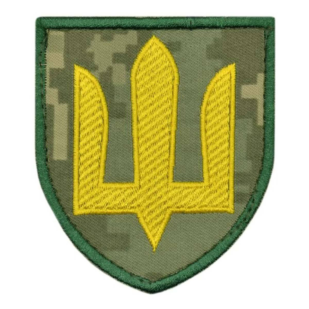 Нашивка Тризуб ЗСУ камуфляж на липучці 7*8 см