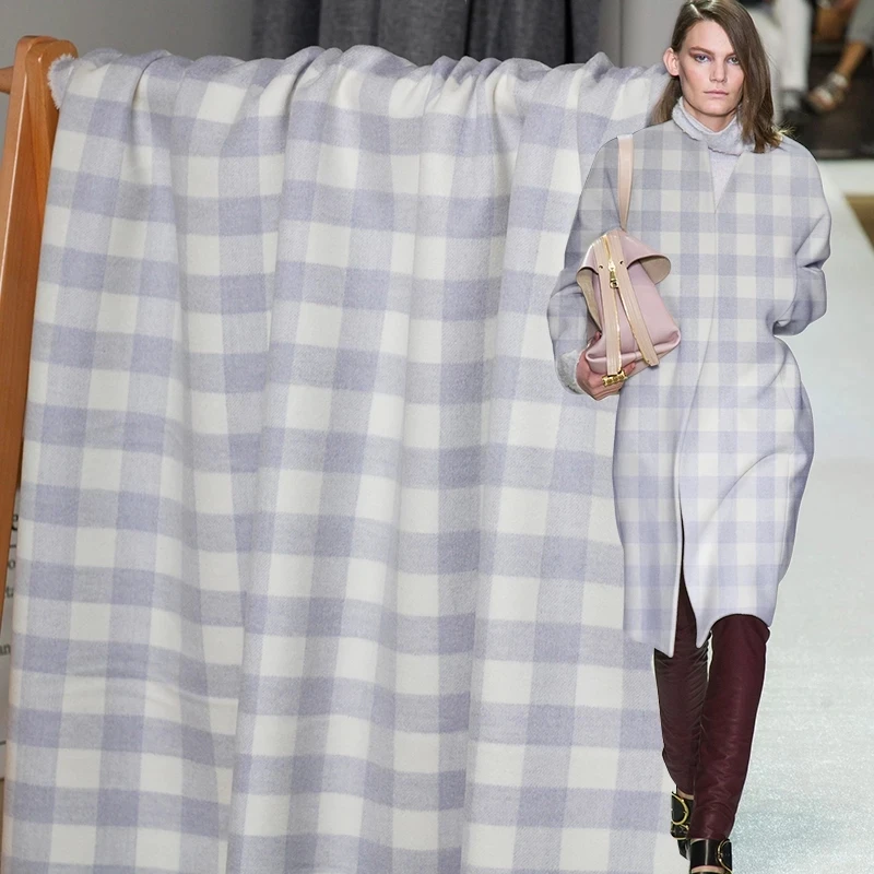 Небесно-голубое клетчатое двустороннее шерстяное Женское зимнее кашемировое пальто, одежда «сделай сам»
