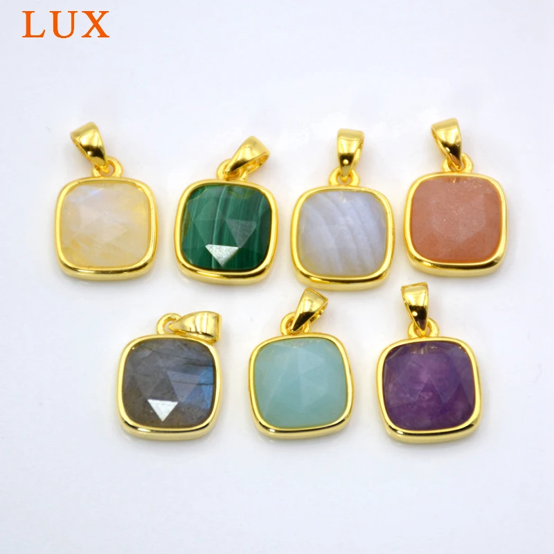 Небольшой Квадратный Кулон из натурального камня, принадлежности для изготовления ювелирных изделий, подвеска в виде золотого гальваничес...