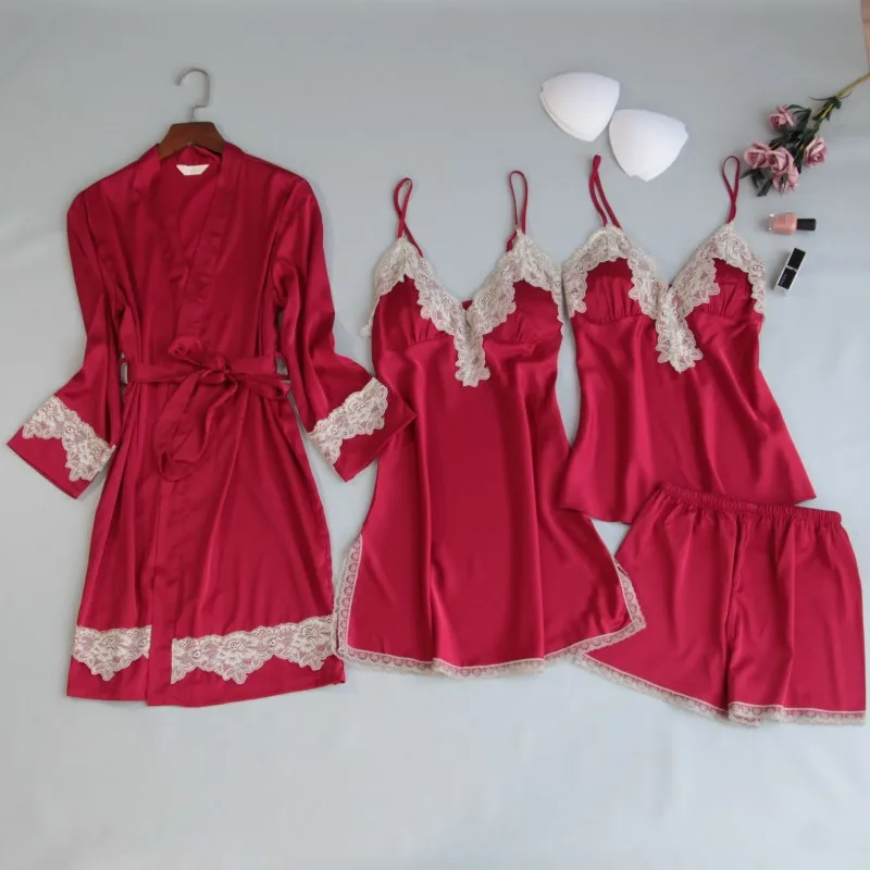 Невесты или подружки невесты, на свадьбу, 4 шт. халат комплекты пикантные с цветочным принтом халат ночная рубашка из искусственного шёлка ...