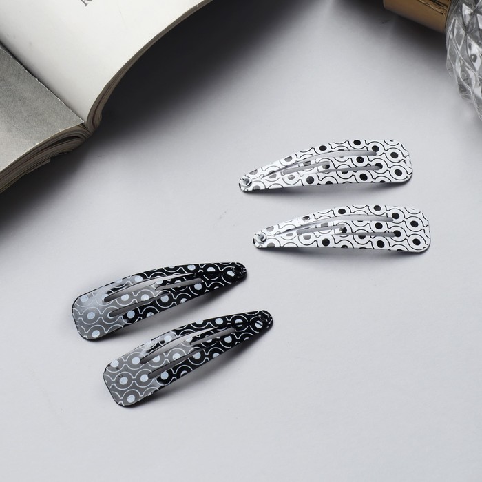 Невидимка для волос "Лира" (набор 10 шт) круги орнамент, 4 см, чёрно-белый