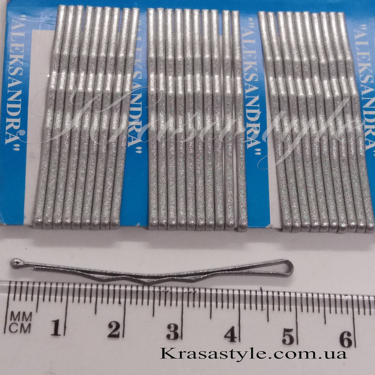 Серебристая матовая эмалированная невидимка , длина 5 см.