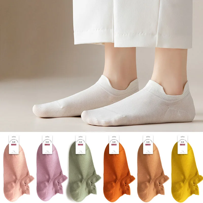 Невидимые женские носки летние однотонные носки до щиколотки, женские хлопковые тапочки, яркие цветные носки