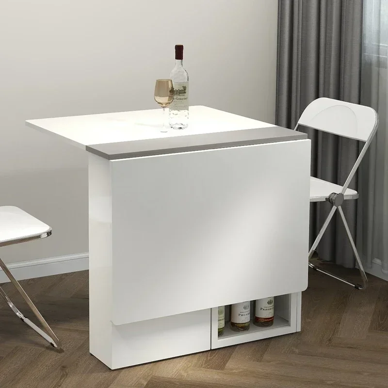 Невидимый складной Ультратонкий белый обеденный стол в стиле фотографий кухонный стол с колесами