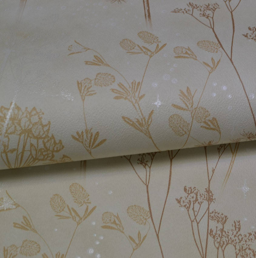 Нежные обои для стен бумажные светлые одуванчики бежевые 0,53х10м, Бежевый