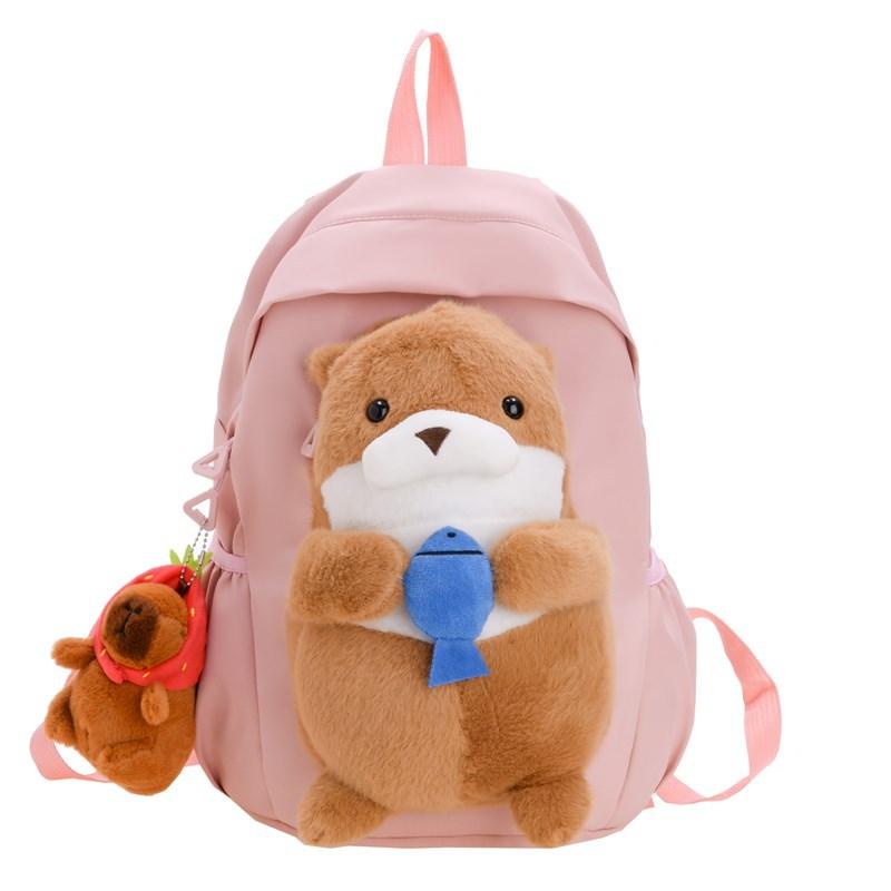 Нейлоновая школьная просторная сумка для малышей с милым дизайном животных и удобной посадкой розовый